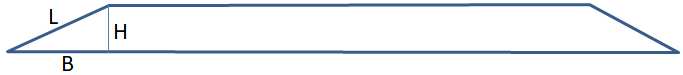 Let's suppose our trailer is 4 feet wide, this would make B=2 feet (or 24 inches) and we want to elevate the centre by 6 inches so H=6. Then we can use the formula